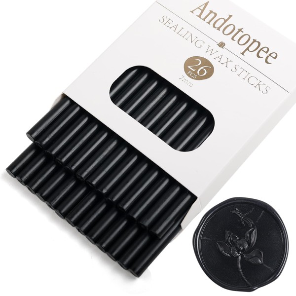 Black Wax Seal Sticks 26pcs, Andotopee Glue Gun Wax Seal Sticks for Wax Seal Stamp, Premium Sealing Wax for Envelope Letter Seal Wedding Invation Craft Adhesive, Great Gift Ideas (Mini Size)