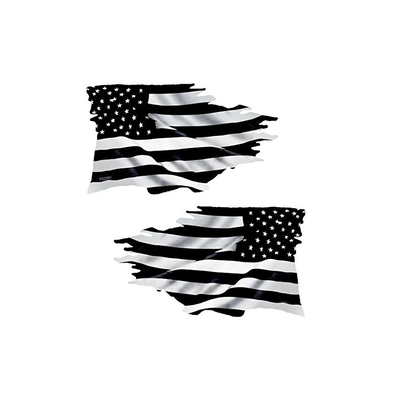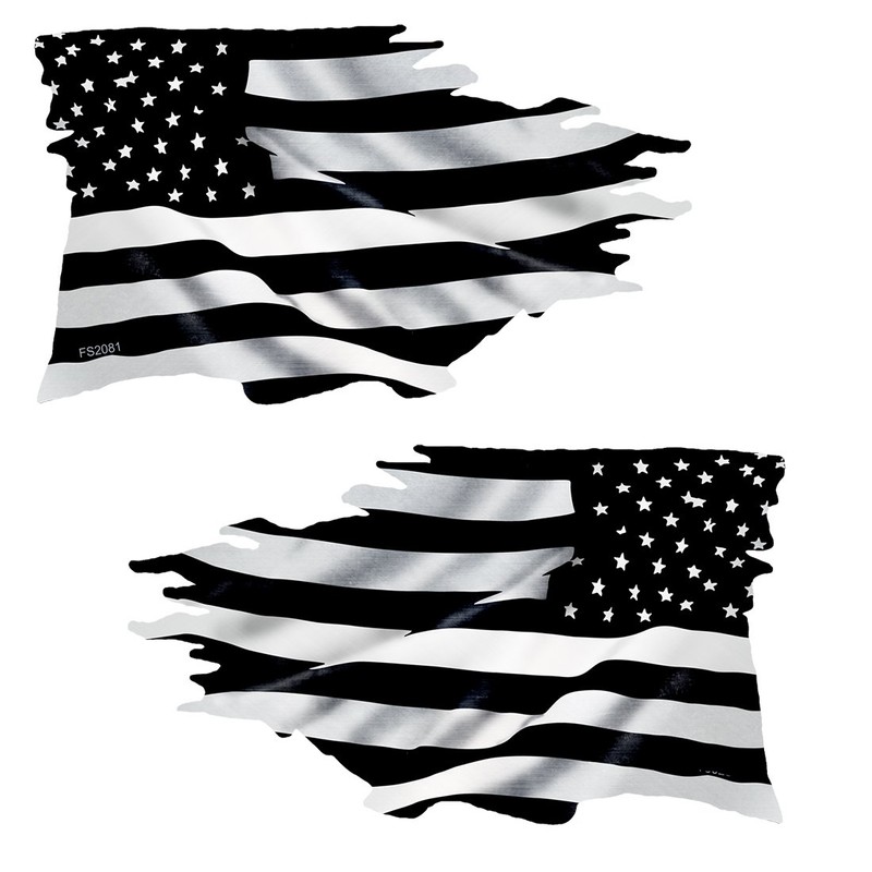Black & White Tattered Mirrored USA Flag Sticker 2 Pack