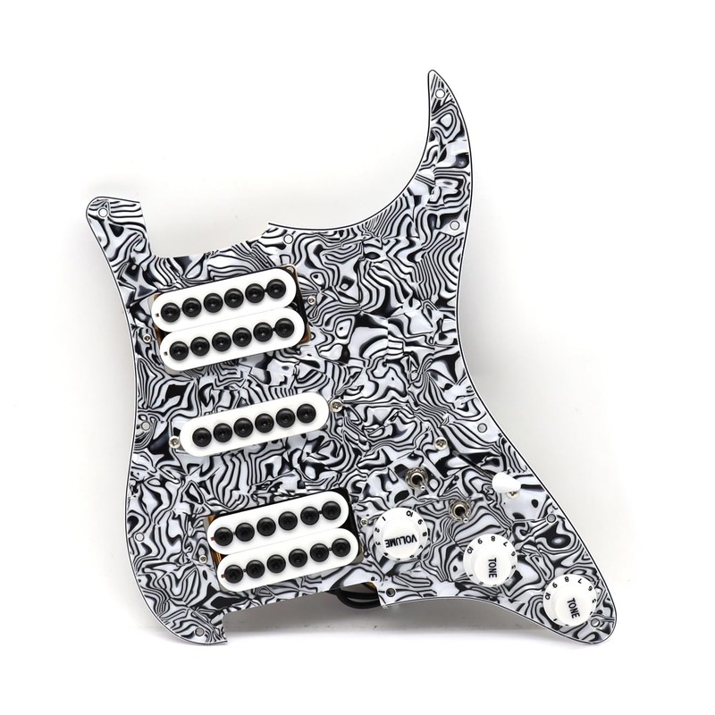 Black White Zebra Color 3-ply SSS/SSH/HH/HSH Electric Guitar Prewired Loaded Pickup Pickguard for Strat Squier Straocaster Style Electric Guitar parts (HSH)