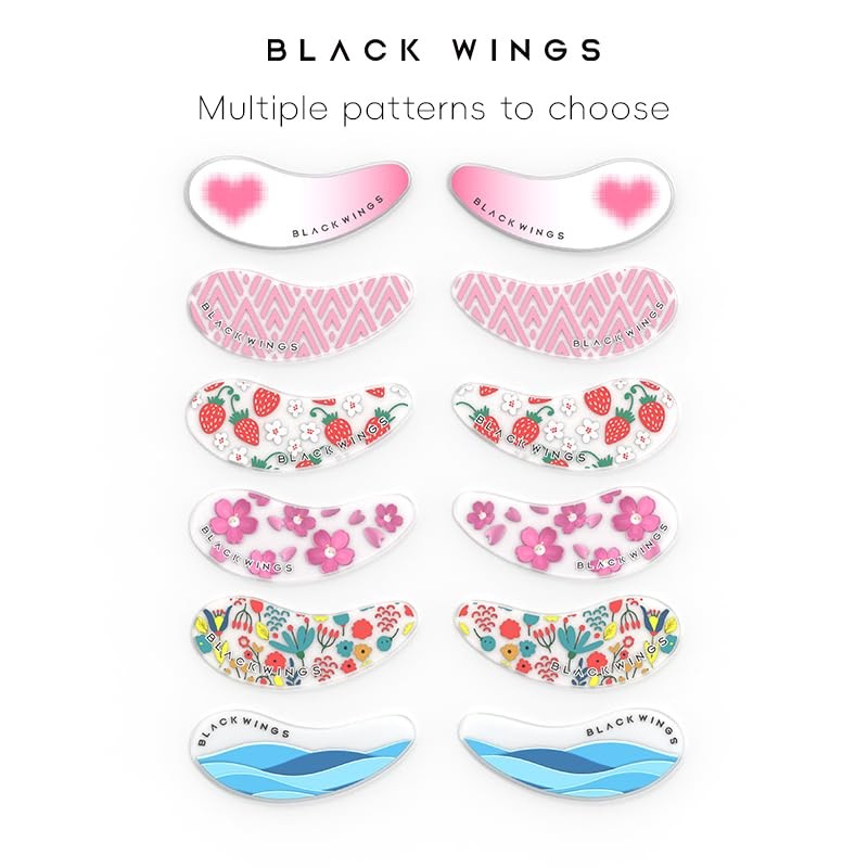 BLACK WINGS 6 Pares De Parches De Silicona Autoadhesivos Para Los Ojos - Parches Para El Cuidado Ocular Inspirados En Osos Y Conejos (6 Pares De Flores)