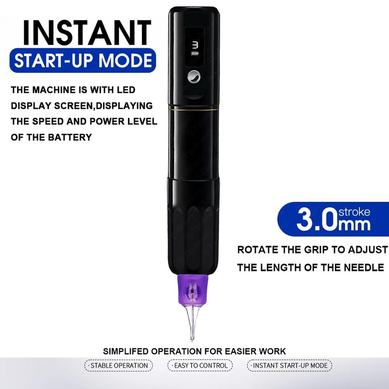 - Wireless Permanent Makeup Machine: The rotary tattoo pen is made of aluminum, the seamless grame body, stable and balanced when used. Wireless design not only makes it more convenient to carry out, but also breaks the limitations of traditional tattoo machines that limit the use of rope connections.