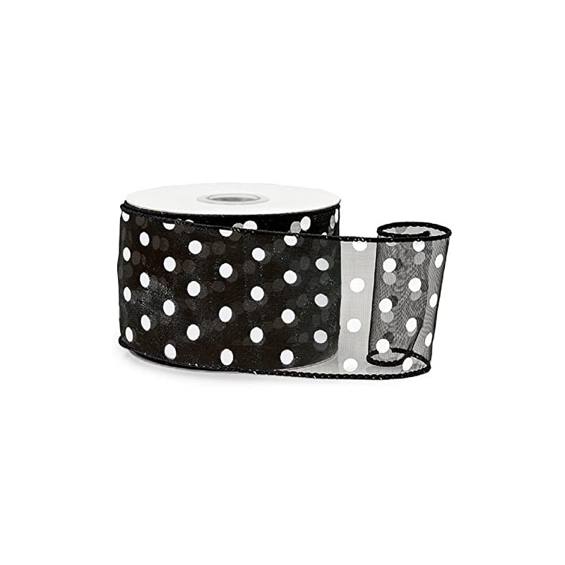 Black with White Polka Dots Sheer Wired Ribbon - 2-1/2in. X 25 Yards - 2 Spools