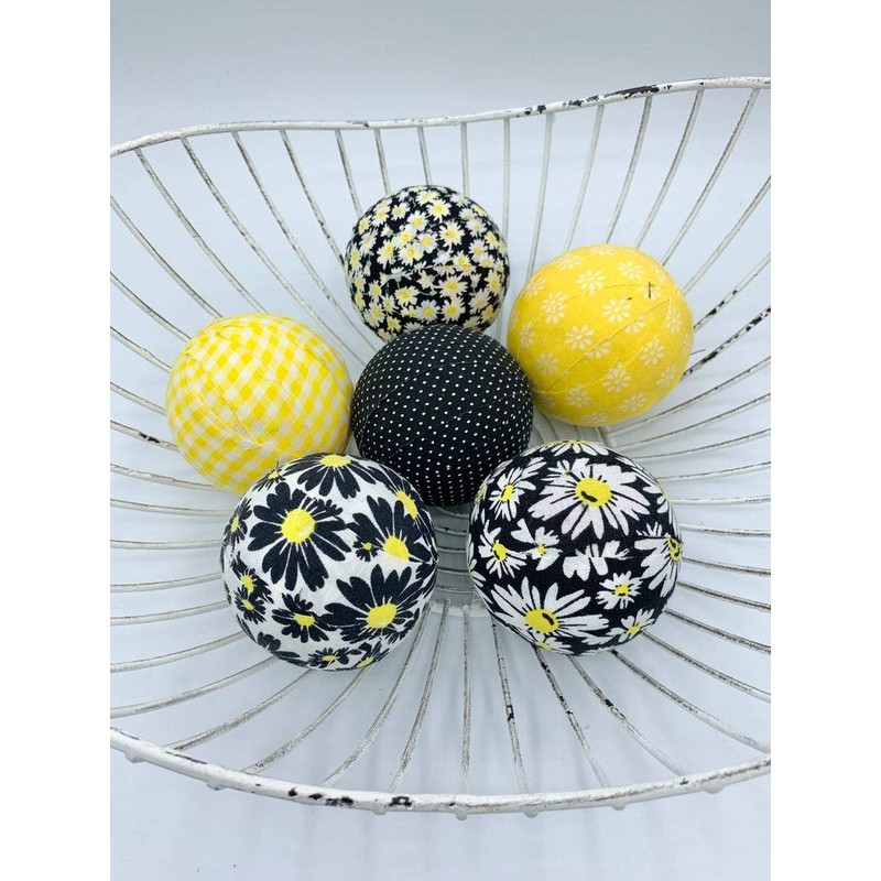 Black Yellow White Daisy fabric wrapped balls- spring summer flower bowl filler orb set