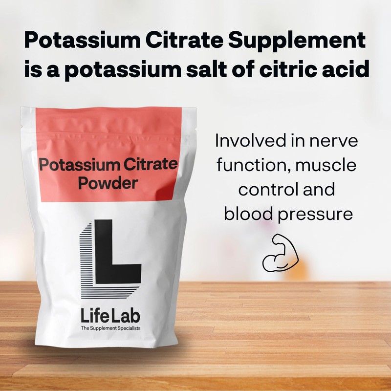 Blackburn Distributions LifeLab Supplements Potassium Citrate Powder, 1 Kilogram - Essential Mineral for Fluid Balance, Nerve Function, Muscle Control and Blood Pressure