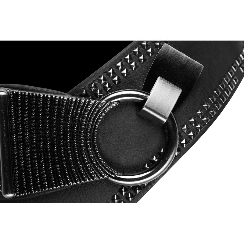• DISTRESSED LOOK - The metallic buckle design sits on a distressed faux leather pad finished with eye-catching metal studs and with smaller pieces attached to the elastic around the back.
