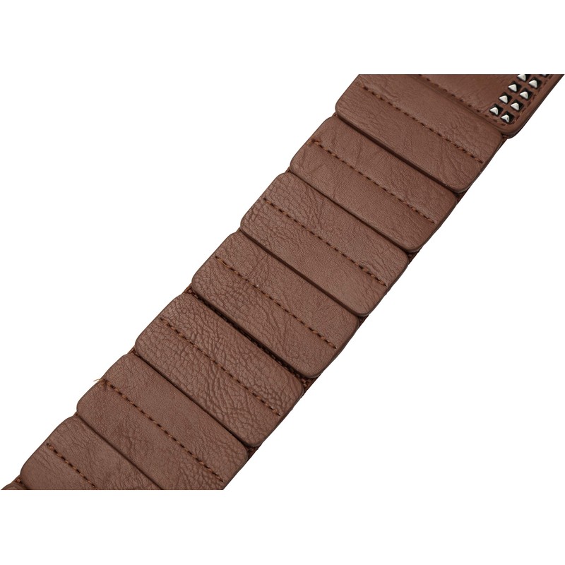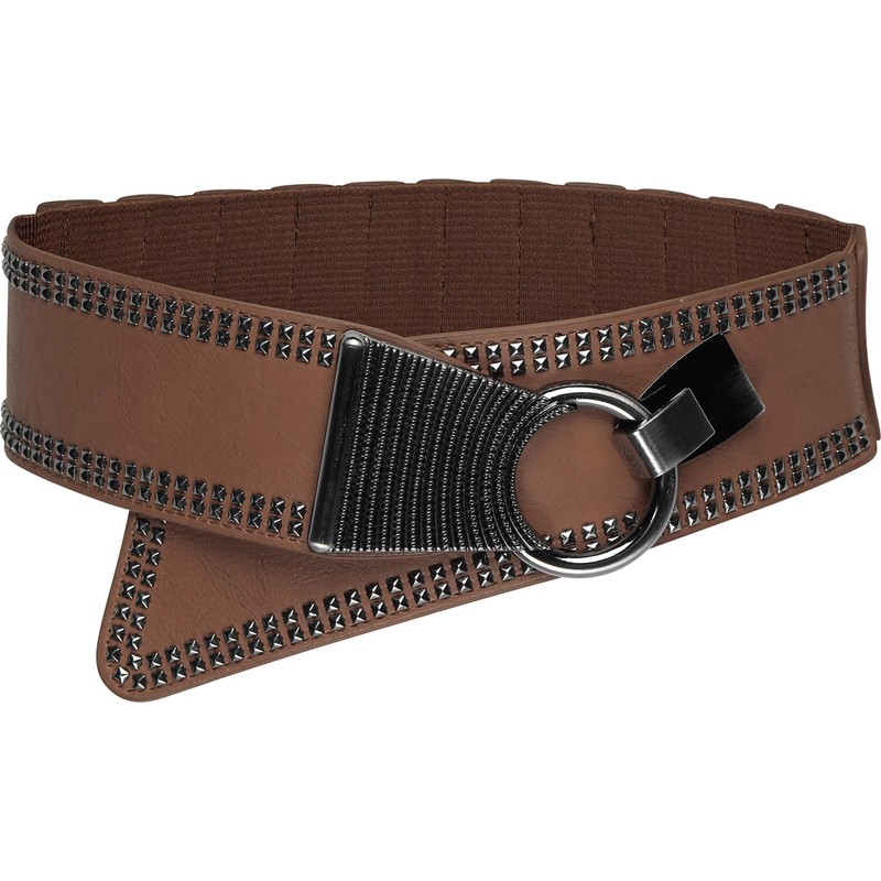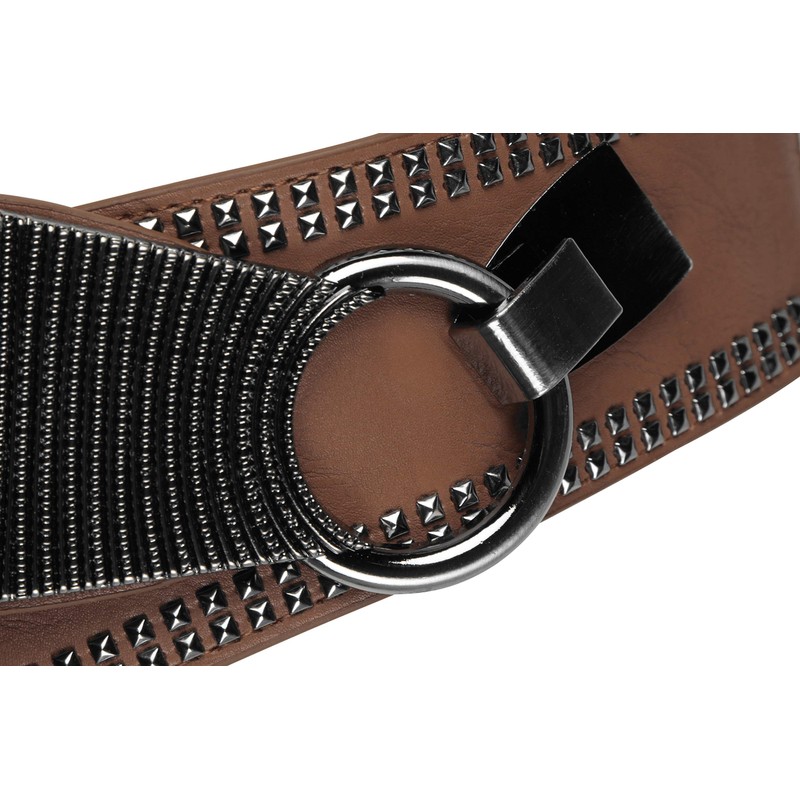 - DISTRESSED LOOK - The metallic buckle design sits on a distressed faux leather pad finished with eye-catching metal studs and with smaller pieces attached to the elastic around the back.