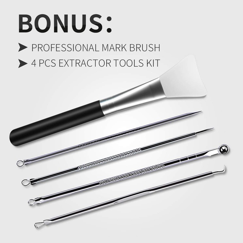 - 4 pieces black head removal tools and silicone brush: Our activated carbon black peel off mask thoroughly removes blackheads, impurities, dirt and excess oil. This mask also comes with 4 piece tool sets and a silicone brush that can help remove acne and blemishes.