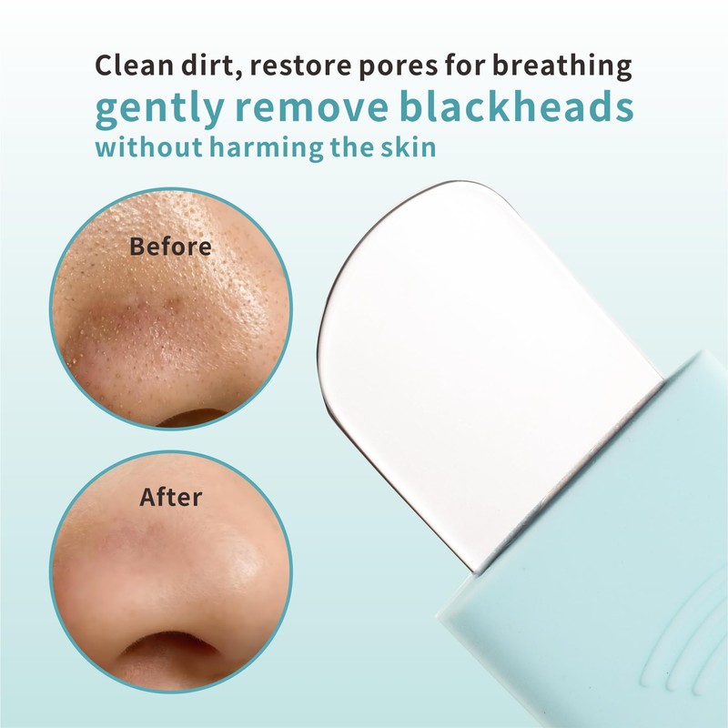 The blackhead remover face scraper tool carefully designed 2 different 304 stainless steel head provides a gentle yet effective way to remove blackheads, dirt, and excess sebum. It's perfect for tackling stubborn blackheads, especially around the nose, leaving your skin feeling clear, smooth, and refreshe.comfortable feeling without any irritate the skin when you use it to scrub your face and nose.