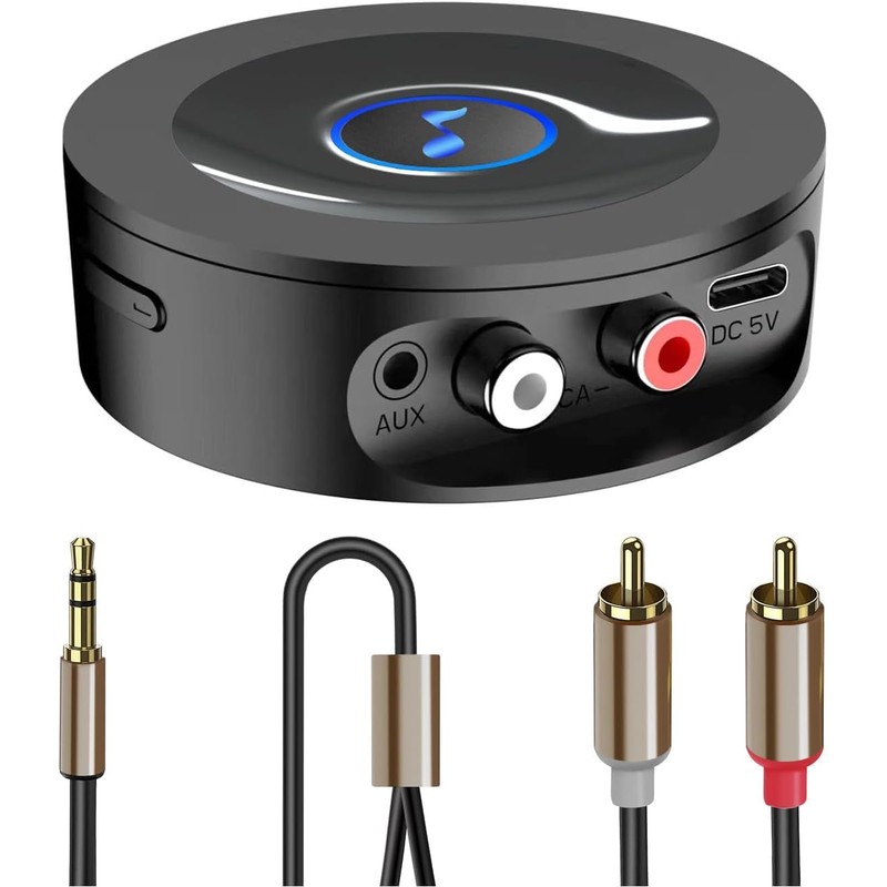 Bluetooth 5.2 Receiver for Home Stereo AUX Adapter for HiFi Music Streaming, Wired Speakers, with AUX 3.5mm/RCA, Long Range,Low Latency and HD Audio