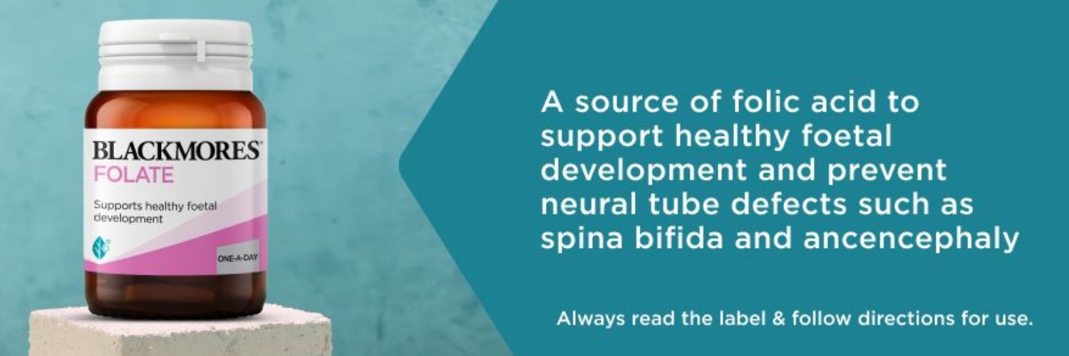 Blackmores Folate is a source of folic acid that provides folate to support folate levels before and during early pregnancy.