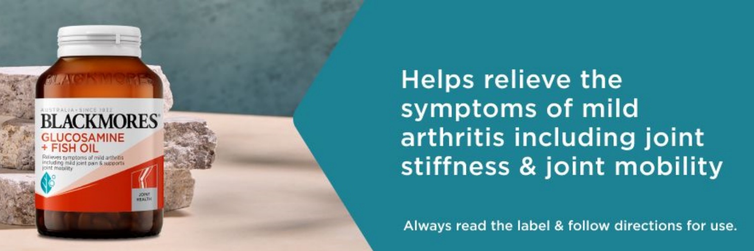 Blackmores Glucosamine + Fish Oil is a dietary supplement that helps support joint comfort and mobility. It is a source of glucosamine
