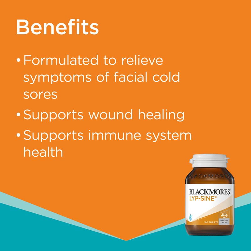 - Blackmores Lyp-Sine is a dose of the amino acid lysine, which can help reduce the number of outbreaks of cold sores, helps relieve symptoms and helps reduce healing time of lesions.