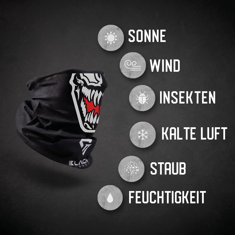 BlackNugget® Printed Multifunctional Scarf with Unusual Design – High Quality Balaclava as Heat and Protective Cloth – Neck Scarf, Face Shield Face Mask – Various Patterns