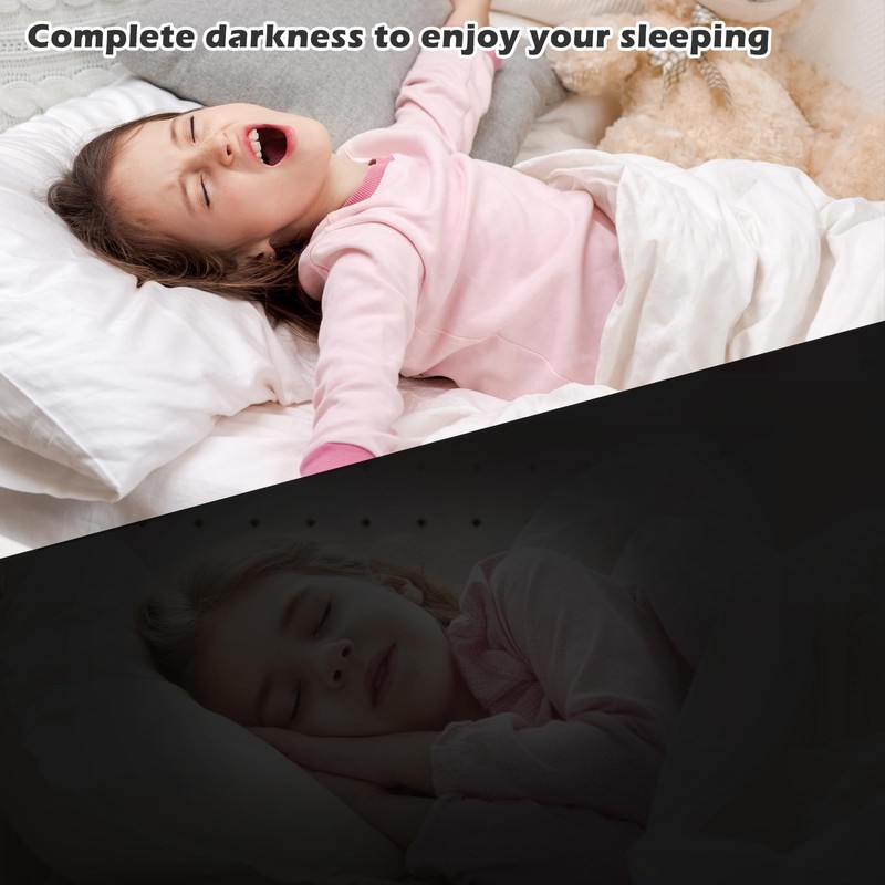 3. Our blackout curtains are made of high quality oxford fabric with black fabric front and silver plated back to reflect sunlight and heat. Complete darkness, enjoy your sleep.