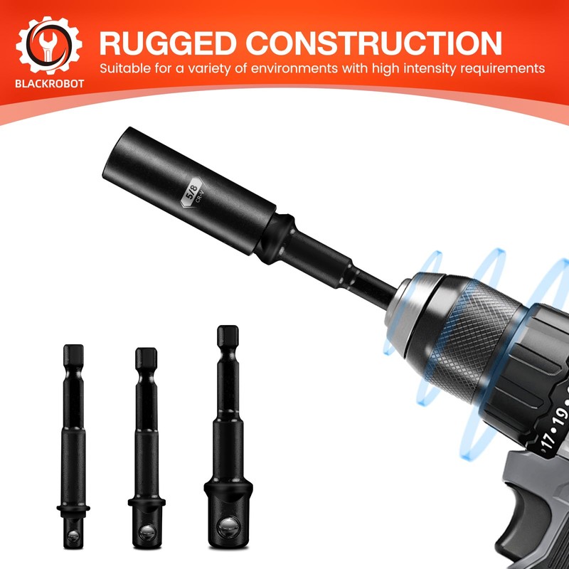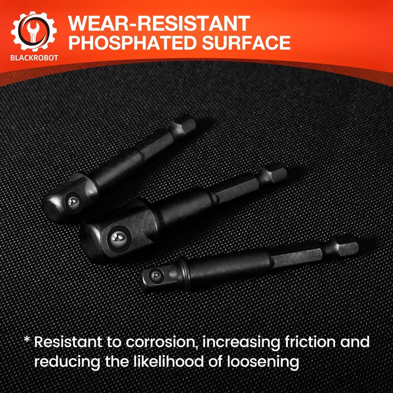 BLACKROBOT 3-Pieces Impact Socket Adapter, 1/4" 3/8" 1/2" Impact Grade Driver Bit Set, Extension Socket Driver Bits Impact Socket Adapter for Automotive DIY