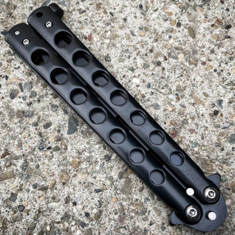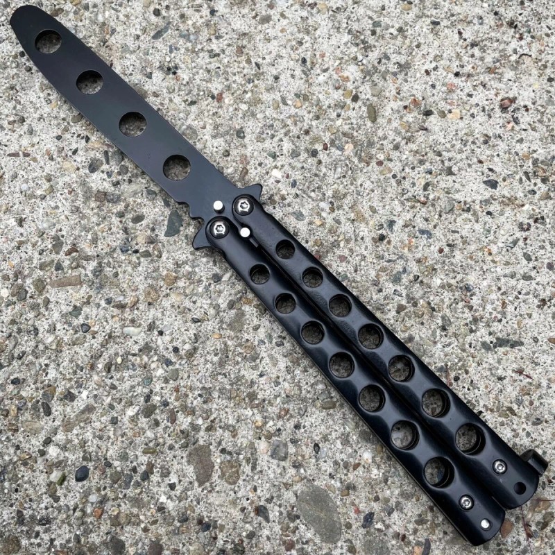 High Quality Practice BLACK Dull Blade BALISONG BUTTERFLY Trainer Knife Training
