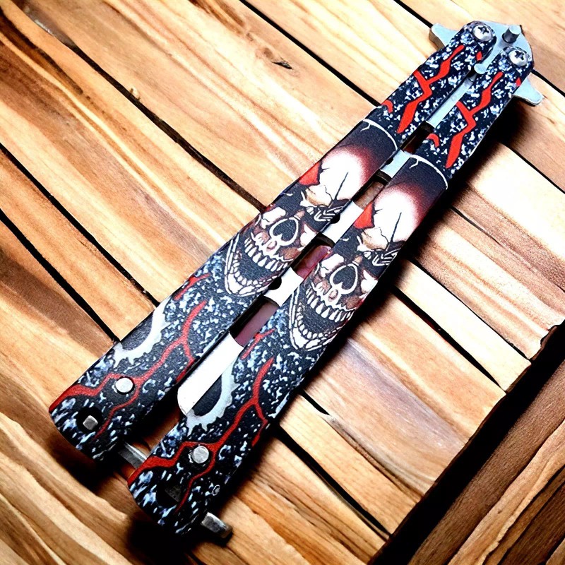 Blade.Addict Skull Butterfly Trainer Knife Training Dull Silver Blade Practice Stainless