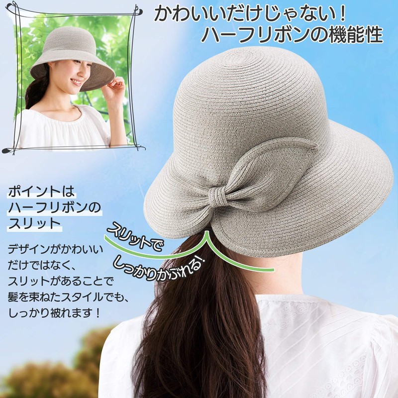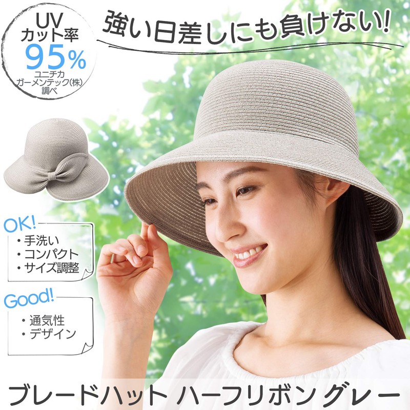 Blade Hat, Half Ribbon, Gray Hat, UV Protection, Sports Day, 95% UV Reduction, Washable, Roll, Portable, Adjustable Size