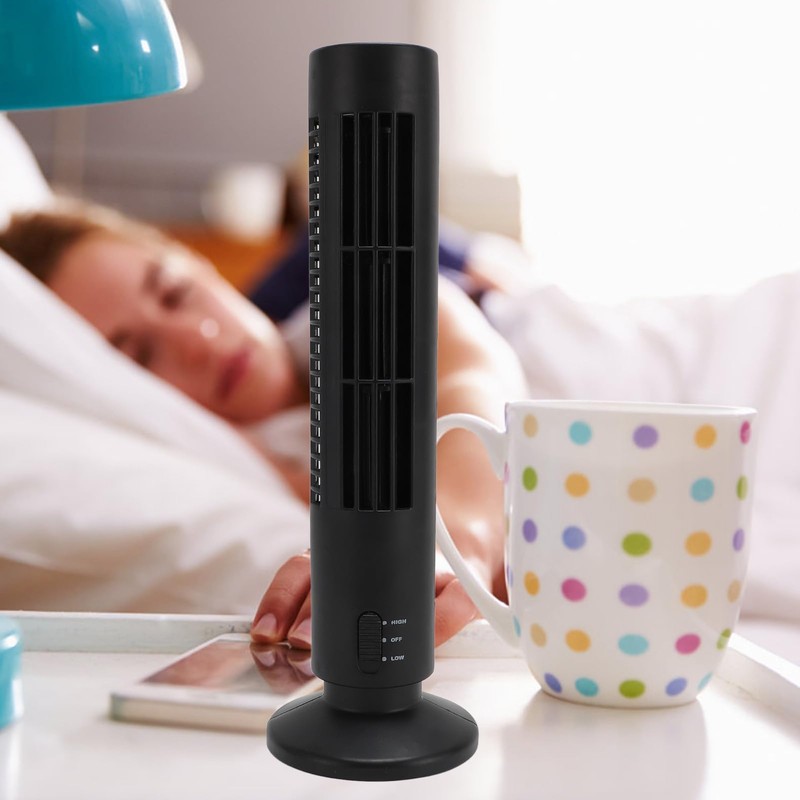 Bladeless Tower Fan, Quiet Portable Desk Fan with 2 Speeds, USB Powered for Home Bedroom Office (Black)