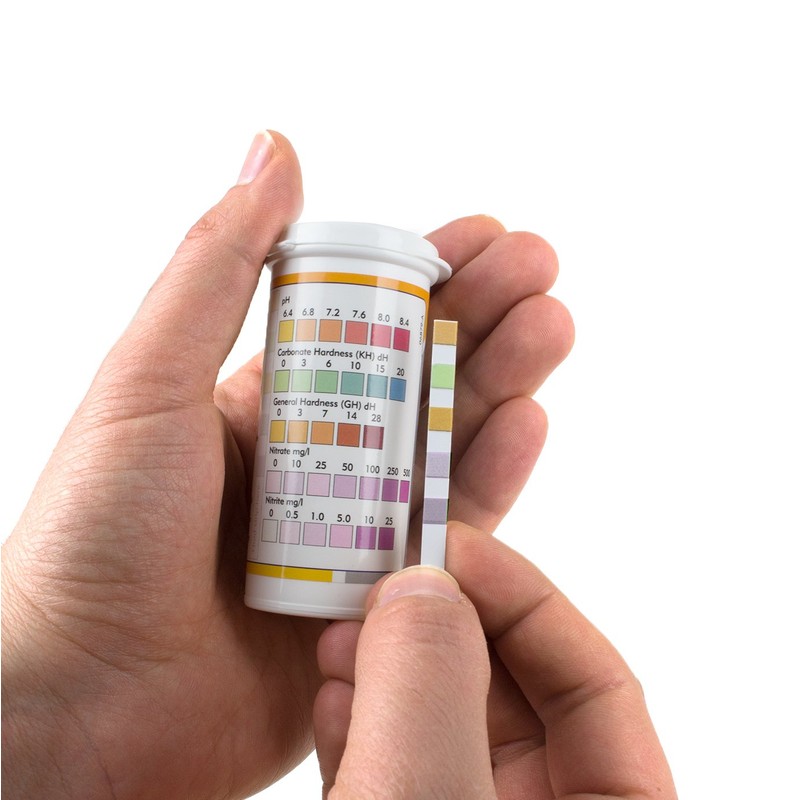 • Kit contains 10 test strips to test for ammonia and 10 test strips to test for nitrite, nitrate, pH, carbonate hardness, general water hardness