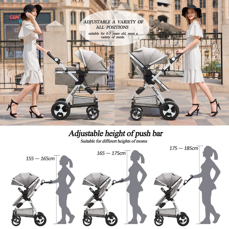 - 【Fantastic Multiple Functions】The infant stroller can be a toddler seat stroller. The sleeping bassinet can be adjusted into a seat position, baby sits upright or semi-recline. Convertible stroller make it possible for baby to face parent or face outdoor scene. Adjustable handlebar meet the demands of people in different height.