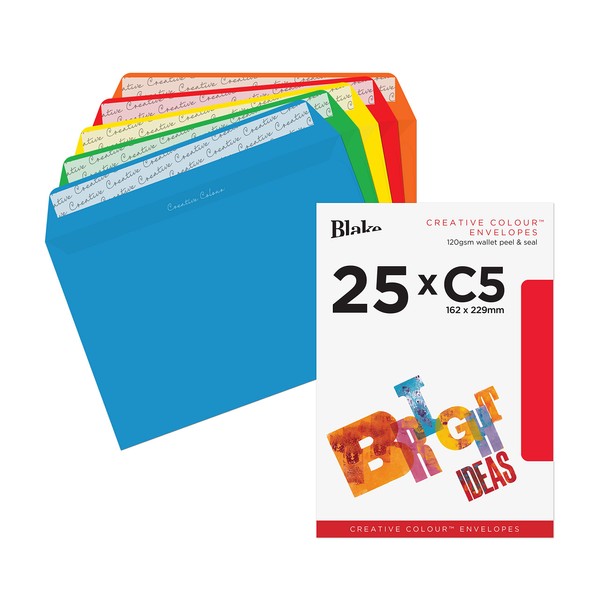 Blake Creative Colour C5 162 x 229 mm 120 gsm Peel & Seal Wallet Envelopes (45123) Assorted Bright Colours - Pack of 25