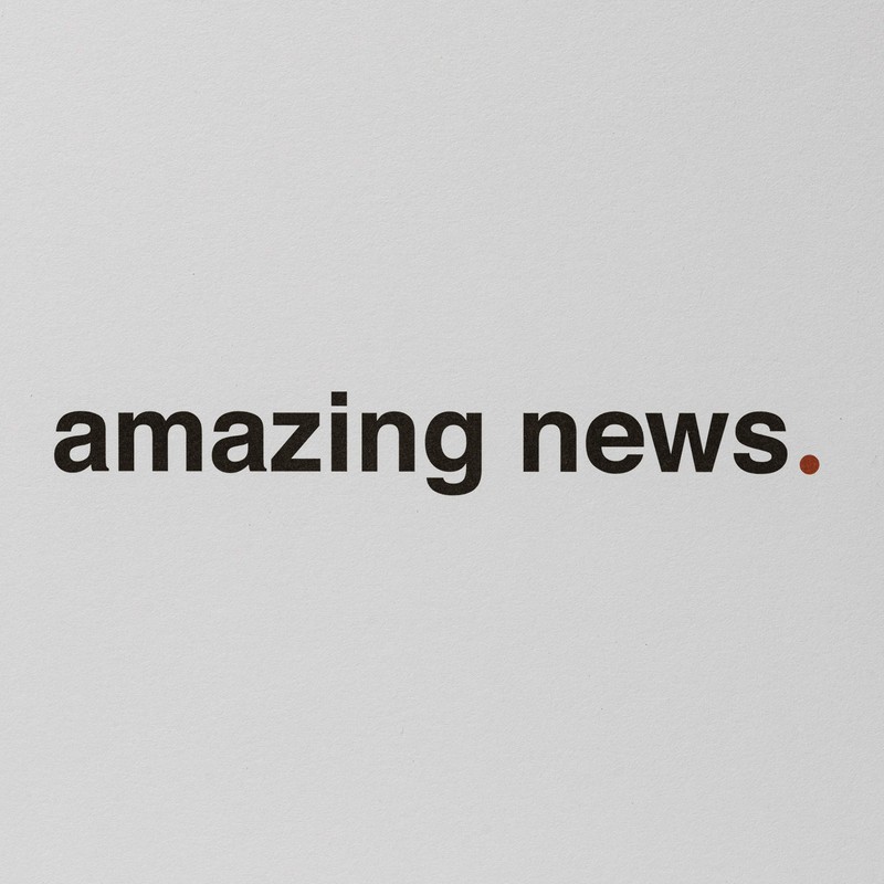 - Contemporary Helvetica Bold font message reading “Amazing News” with a funky coloured dot for an unexpected and unconventional twist