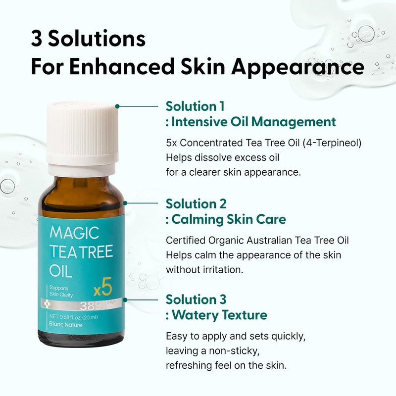 BLANC NATURE – Magic Tea Tree Oil for Face, Clarifying Facial Oil for Oily & Sensitive Skin, Lightweight Daily Care with Tea Tree, Skin-Balancing Vegan Korean Skincare, 0.7 fl oz