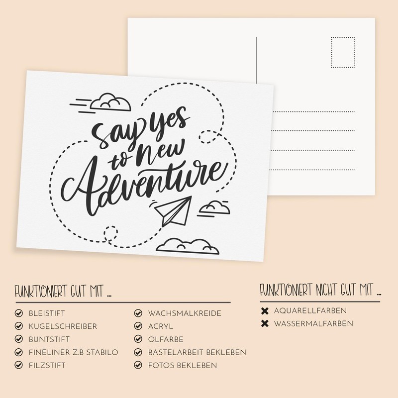 • Decorative: 50 white blank postcards in DIN A6 format (10.5 cm x 14.8 cm) with address field on the back