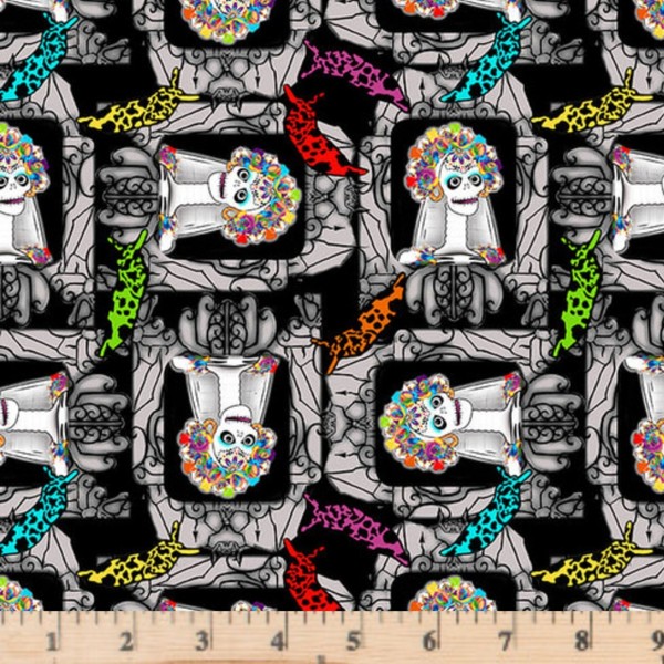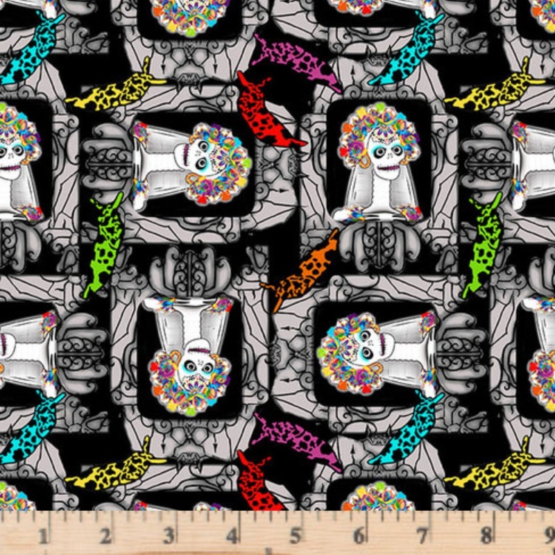 Blank Quilting Creepy And Kooky Glow in the Dark Corpse Bride Portraits Fabric By the half yard