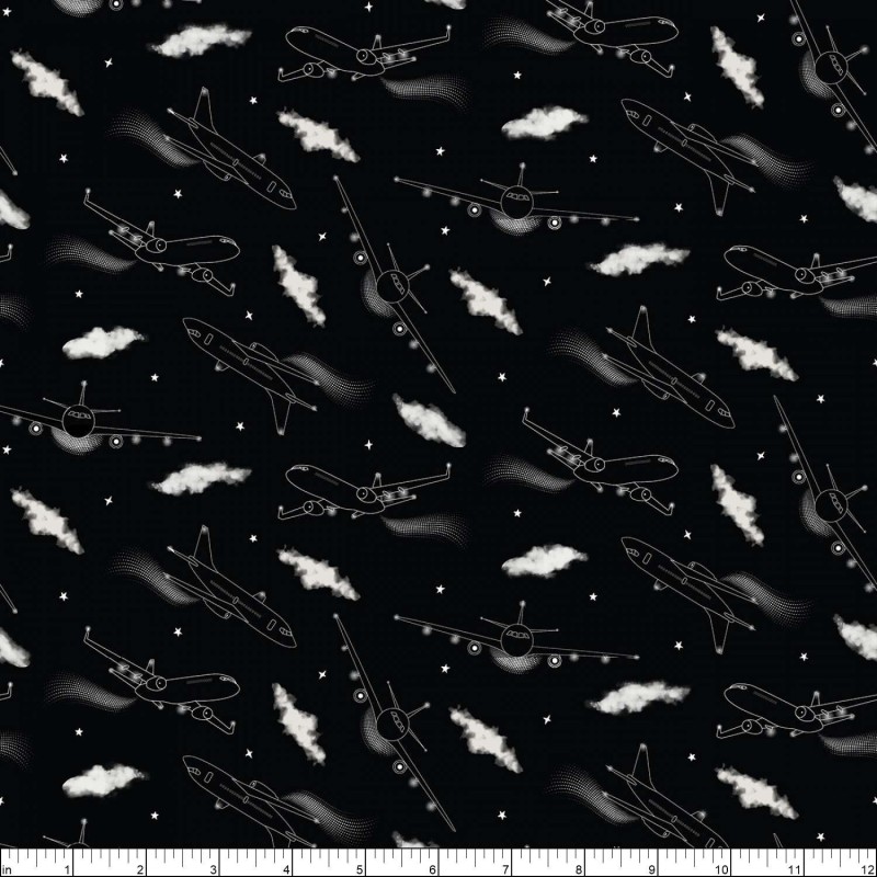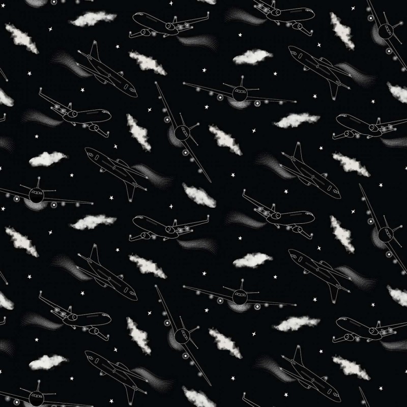 Blank Quilting - Lets Glow Crazy - Airplanes - Glow In The Dark - Black