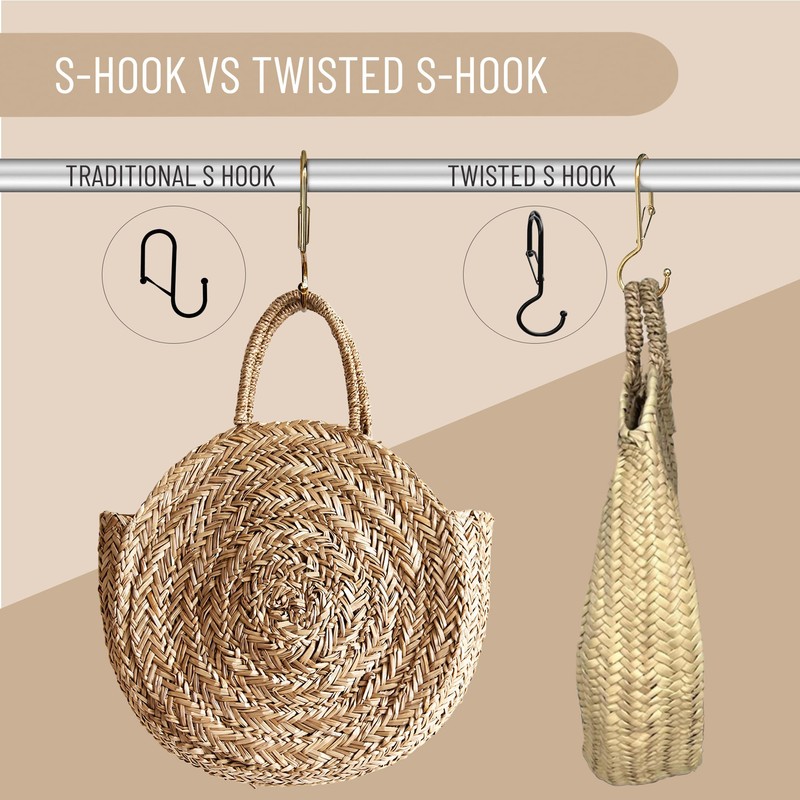 Blau Marité 6 Purse Hanger for Closet. Tote Hanger. S-Shaped Hooks S Hooks Twist Design. Anti Drop S-Shaped Hook for Hanging Handbags with Safety Buckle to Prevent Falls. Heavy Duty. (Gold, Twisted)