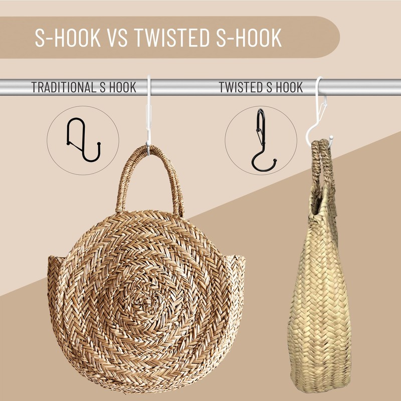 Blau Marité 6 Purse Hanger for Closet. Tote Hanger. S-Shaped Hooks S Hooks Twist Design. Anti Drop S-Shaped Hook for Hanging Handbags with Safety Buckle to Prevent Falls. Heavy Duty. (White, Twisted)