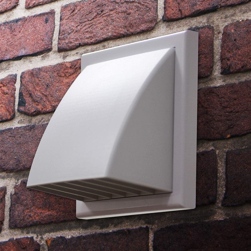 - Cowled hooded wall vent baffle with removable single blade back draught shutter