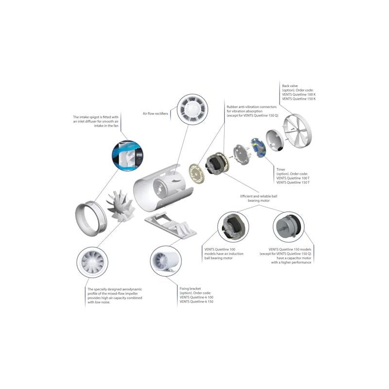 - Reliable Motor: Long-life ball bearing motor, 220-240V with thermal protection, designed for PVC or flexible ducting systems, ideal for low to medium air flow.