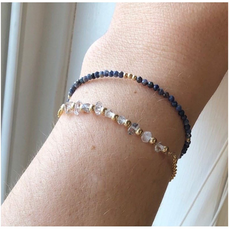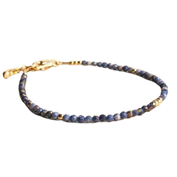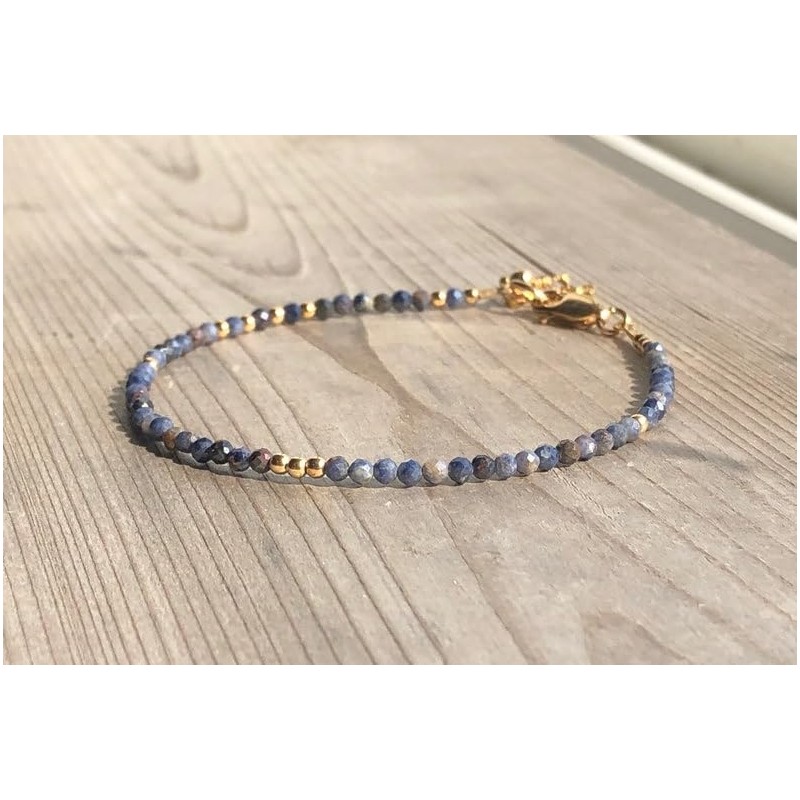Blauer Saphir, 3 mm, runde Form, facettierte Perlen, 17,8 cm, verstellbarer vergoldeter Verschluss, Armband für Männer und Frauen | LK_STACK_01635