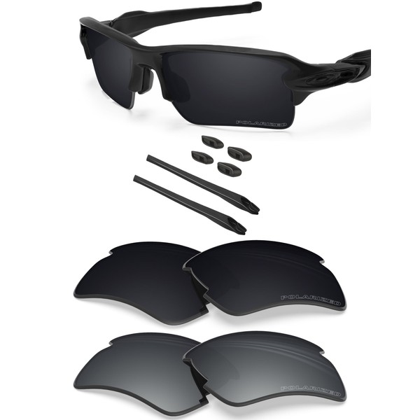 BLAZERBUCK 2 Pairs Anti Salt Polarized Replacement Lenses for Oakley Flak 2.0 XL Sunglass - Black & Silver Chrome