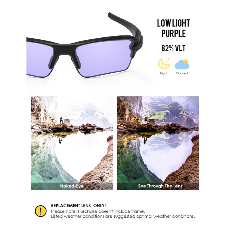 BLAZERBUCK Replacement Lenses & Sock Kit for Oakley Flak 2.0 XL OO9188 - Low Light Purple