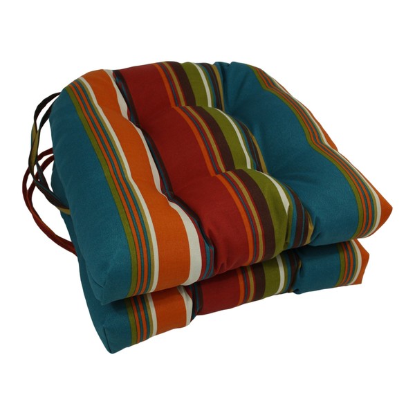 Blazing Needles Spun Polyester Patterned Outdoor U-Shaped Tufted Chair Cushions Set, Set of 2, 16", Alenia Pompeii