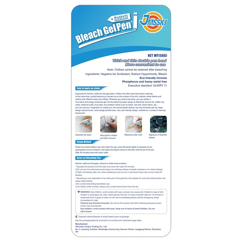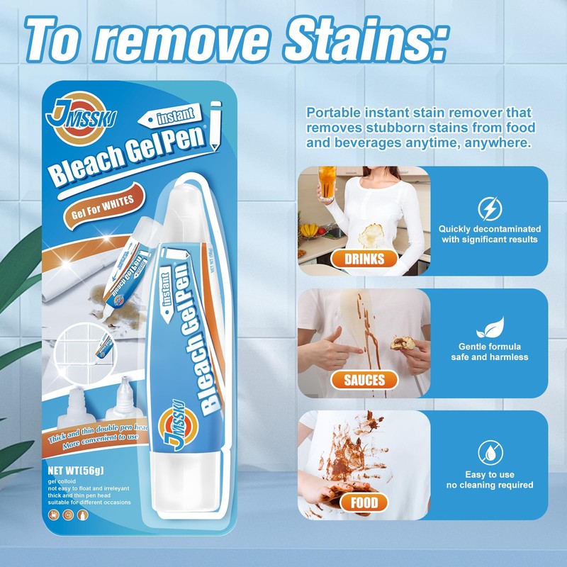 - NOTE: Do not use colored clothing, Note that when using colored clothes, please use caution because bleaching effect may occur. The smell of the bleach gel pen is normal, please normal to use!