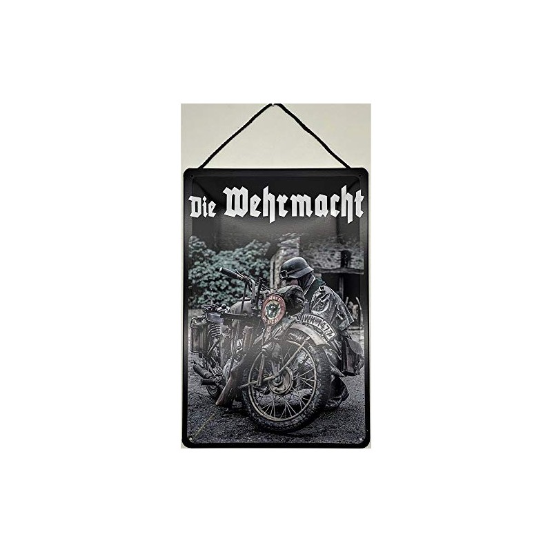 Blechschild With Cord 30 x 20 cm Die Wehrmacht am Motorrad: Halt Polizei - Blechemma