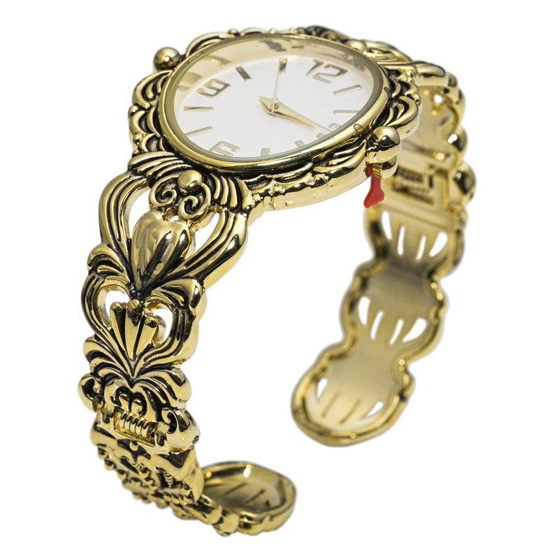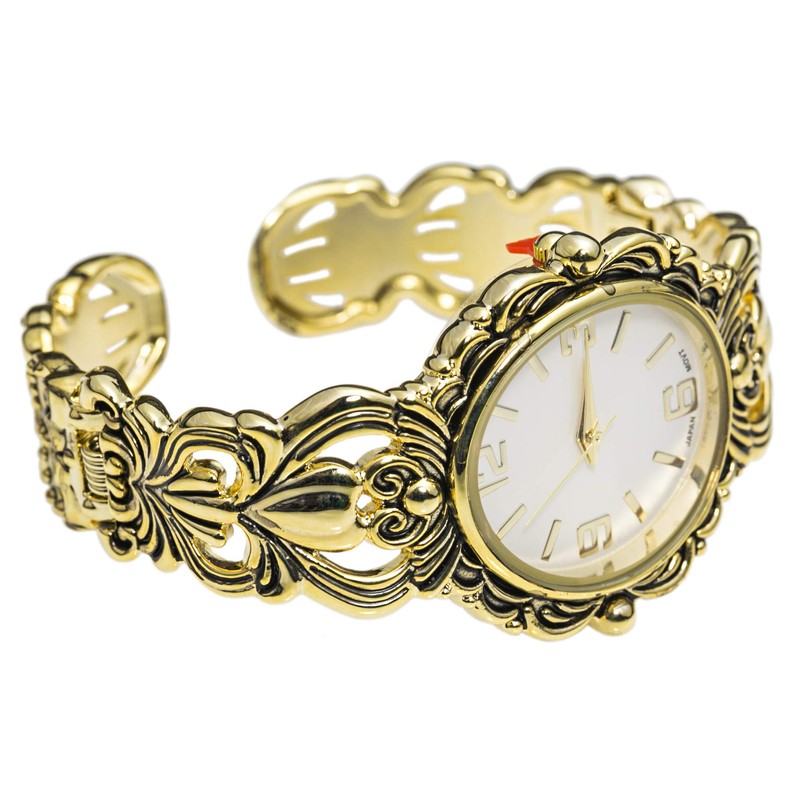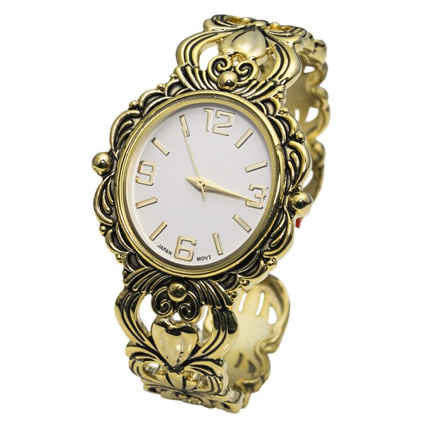 Blekon Collections Japanese Quartz Women's 35mm Case Egyptian Style Concho Cuff Bangle Watch (Gold)