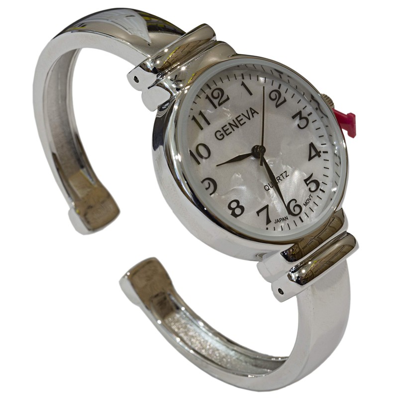 Blekon Collections Quartz Movement Mother of Pearl Dial Classic Design Womens Cuff Bangle Watch (Silver)