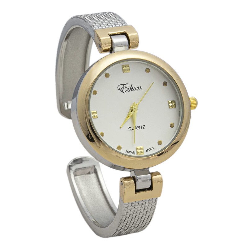 Blekon Collections Womens 32mm Classic Dial Dotted Textured Cuff Bangle Watch (Two-Tone)