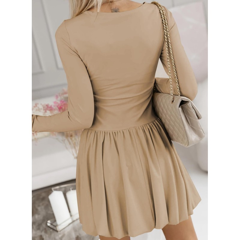 BLENCOT Fall Dresses for Women Long Sleeve Casual Trendy Square Neck Bubble Mini A Line Dress Party Club Smoke Gray XL