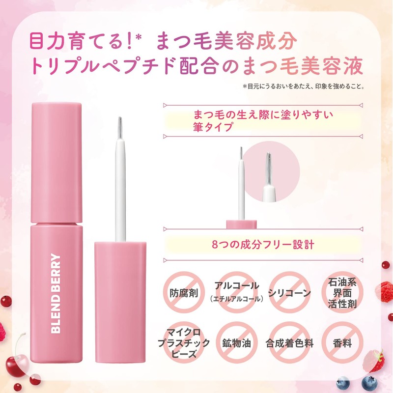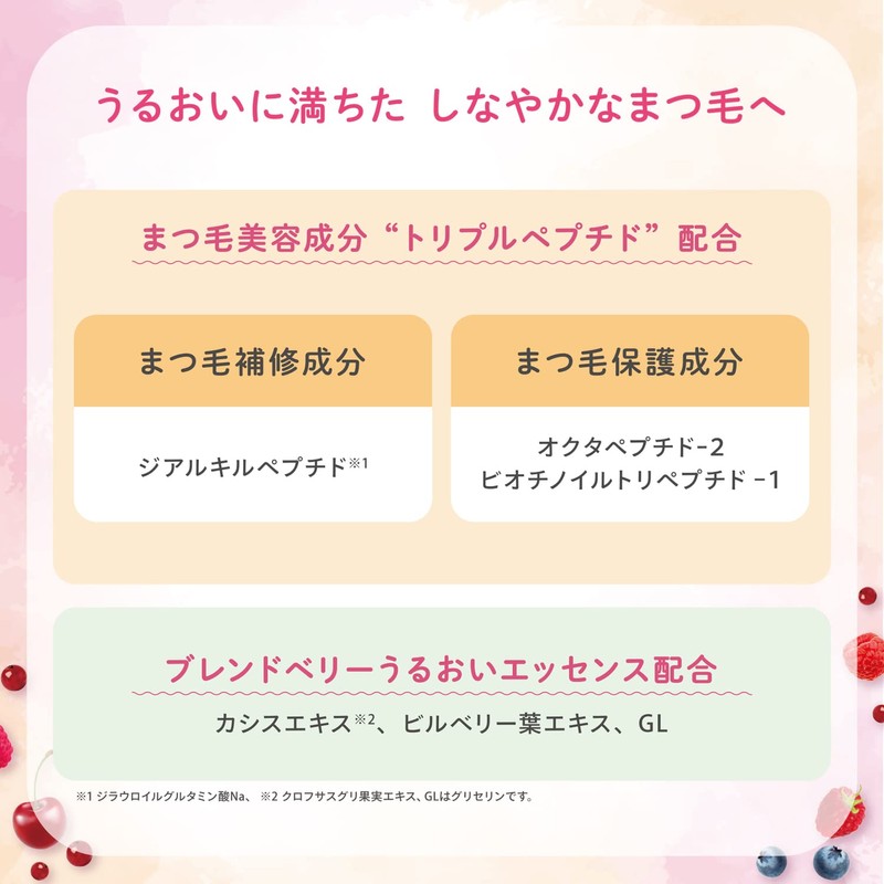 - Eye-raising *! Formulated with "Triple Peptide" eyelash beauty ingredient. Blended berry moisturizing essence for moisturizing and supple eyelashes. * Moisturizes your eyes and enhances your impression