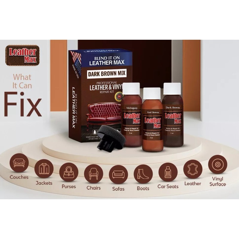 - One repair kit, unlimited uses: match shades of , dark brown, brown, mahogany, medium Brown and more fix genuine leather or synthetic auto upholstery, steering wheel, purse, shoes, belt, peeling leather chair or wallet.