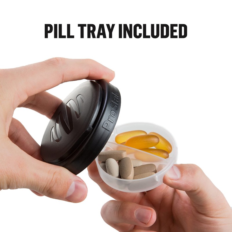 • Includes 22 oz capacity (measurement markings to 16 oz) BlenderBottle, 150 cc jar, 100 cc jar, pill organizer and patented BlenderBall wire whisk