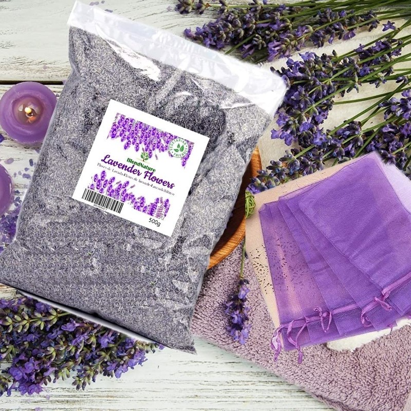 BlendNature Natural Dried Lavender Flowers 500g Potpourri Sachet - Includes 10 Sachets for Aromatherapy