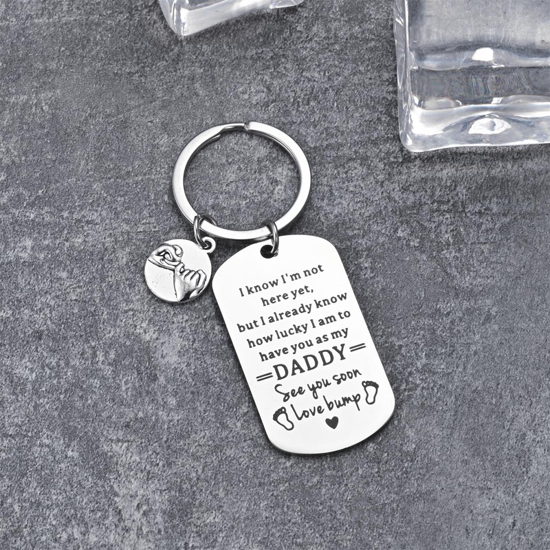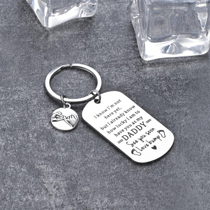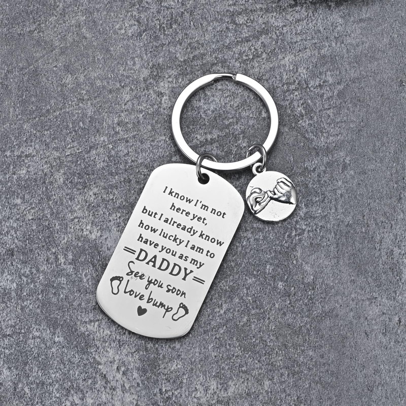 • New Dad Will be His Gift: The beautiful keychain is engraved with the words "I know I am not here yet but I already know how lucky I am to have you as my daddy. Love bump.", showing the desire and anticipation of meeting the new dad from the very beginning of the newborn's life.